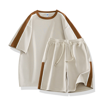 Verano nuevo Waffle moda Casual deportes americano traje suelto adolescentes estudiantes moda Camiseta corta transpirable de punto